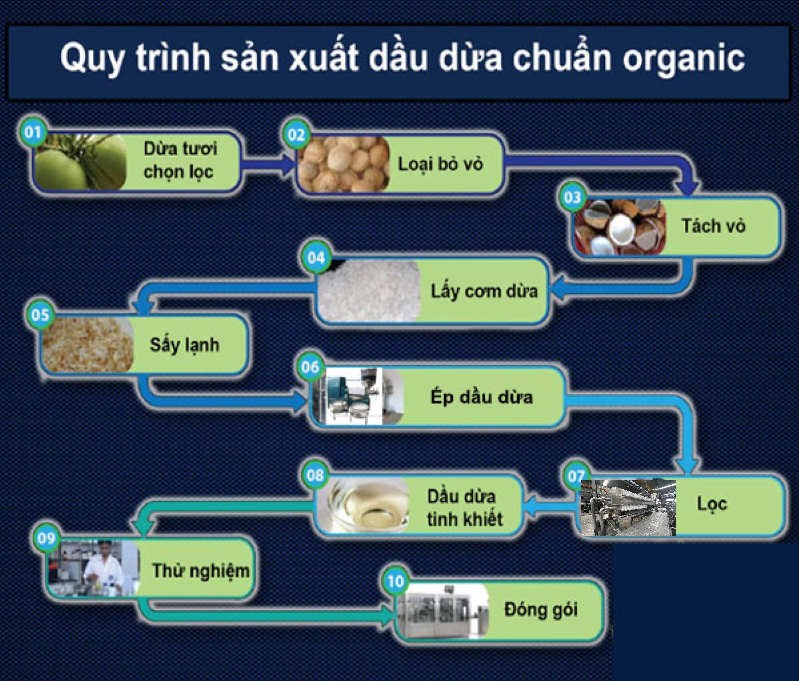 Để có thể thu được loại dầu dừa nguyên chất thì quá trình lọc ép dầu dừa là bước vô cùng quan trọng, quá trình lọc ép sẽ giúp loại bỏ được các tạp chất, vi khuẩn và các chất khác có thể gây hại cho sức khỏe con người.